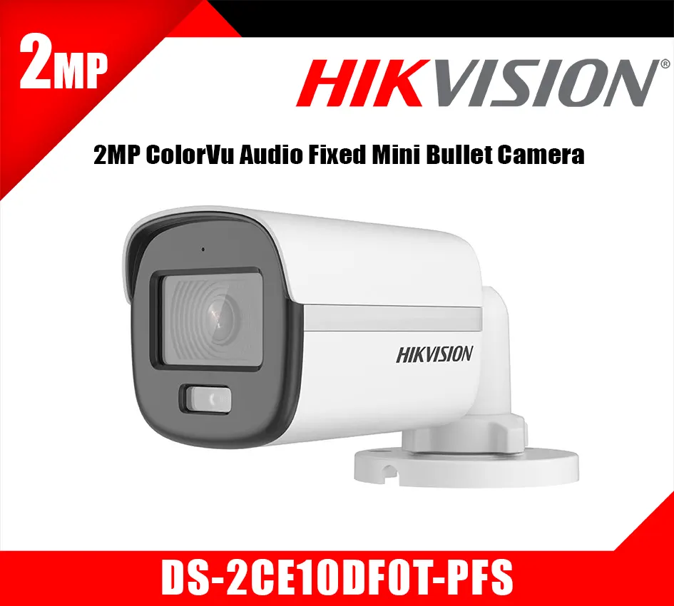 | Hikvision | DS-2CE10KF0T-MFS | 2MP ColorVu bullet, audio, white light |